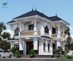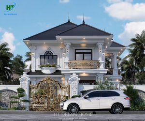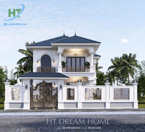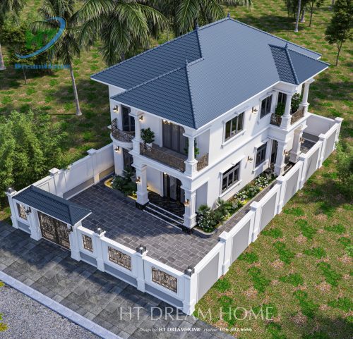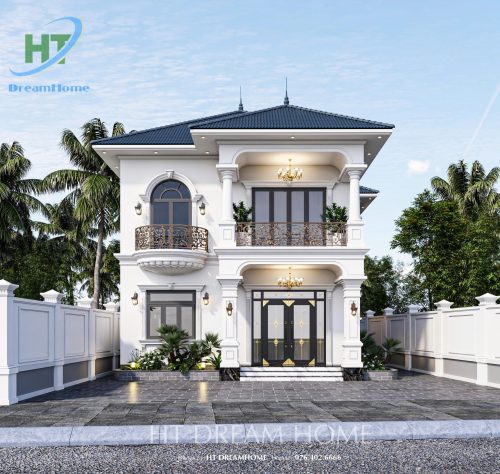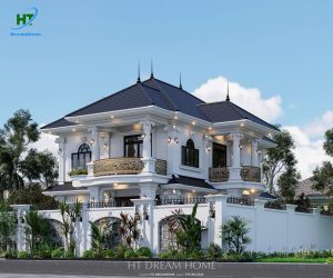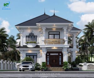 Ngôi biệt thự thu hút ánh nhìn bởi tone màu trắng sứ chủ đạo, kết hợp hài hòa với màu xanh đen sang trọng của hệ mái Nhật. Các kiến trúc sư của HT Dreamhome đã khéo léo sử dụng những mảng khối vuông vức, điểm xuyết thêm các đường chỉ ngang tinh tế để tạo nên sự bề thế mà không hề nặng nề.
